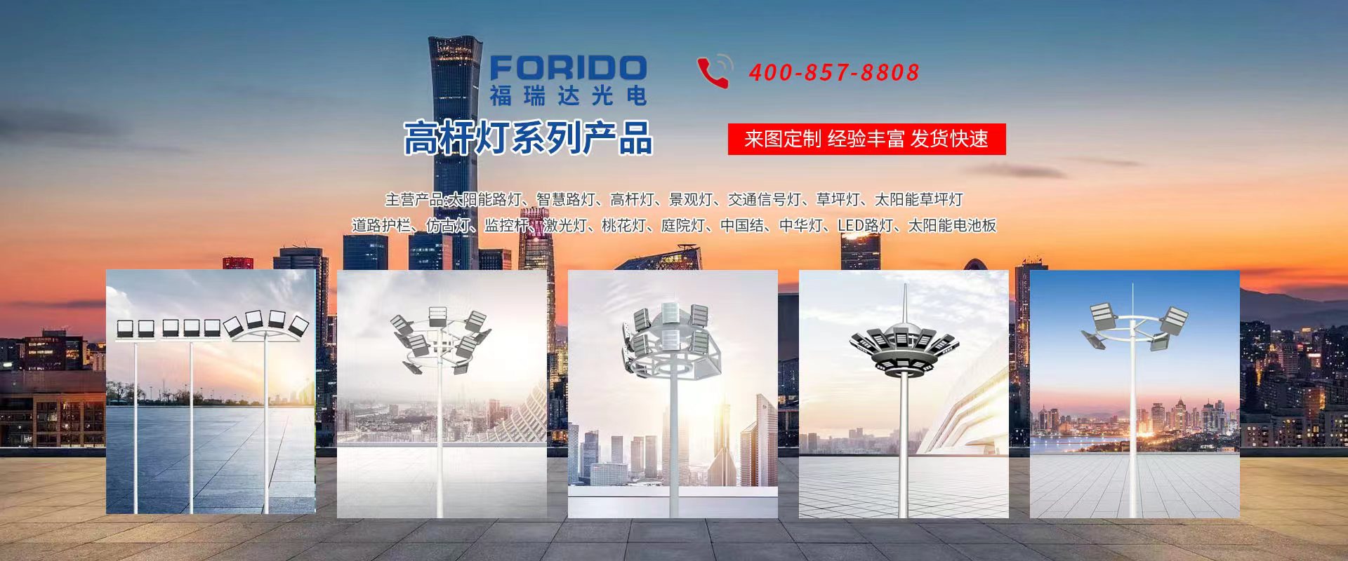 揚州福瑞達光電科技有限公司位于淮左名都歷史文化名城、中國路燈制造基地揚州市北郊菱塘工業(yè)園,公司占地面積76000平方米,注冊資金10518萬元,擁有高級技術嫻熟的員工280多人,擁有大型折彎機、激光切割、數控注塑機、壓鑄機、自動埋弧焊、氣焊、彩色粉末靜電噴塑等大型自動化設備,我公司是一家集設計、研發(fā)、生產、銷售、施工安裝服務為一體的戶外交通照明產品制造商,主要生產智慧路燈、太陽能路燈、LED路燈、高桿燈、景觀燈、交通信號燈、交通標志牌、通信鐵塔、路跨鋼結構、公交站臺、太陽能光伏組件、景點亮化、樓宇亮化工程的設計施工等。公司秉承開拓創(chuàng)新、銳意進取、精誠服務的企業(yè)精神,堅持以“誠信為本、技術為先、服務是金”的合作理念,我們憑借先進的制造工藝、優(yōu)質的產品質量、合理的市場價格和完善的售后服務贏得了廣闊的市場和客戶的信賴。 我公司已通過ISO9001質量體系認證、ISO14001環(huán)境管理體認證,CQC產品認證,中國節(jié)能產品認證,通過“CCC”強制性產品認證,具有市政總承包,照明,交安,設計等資質···